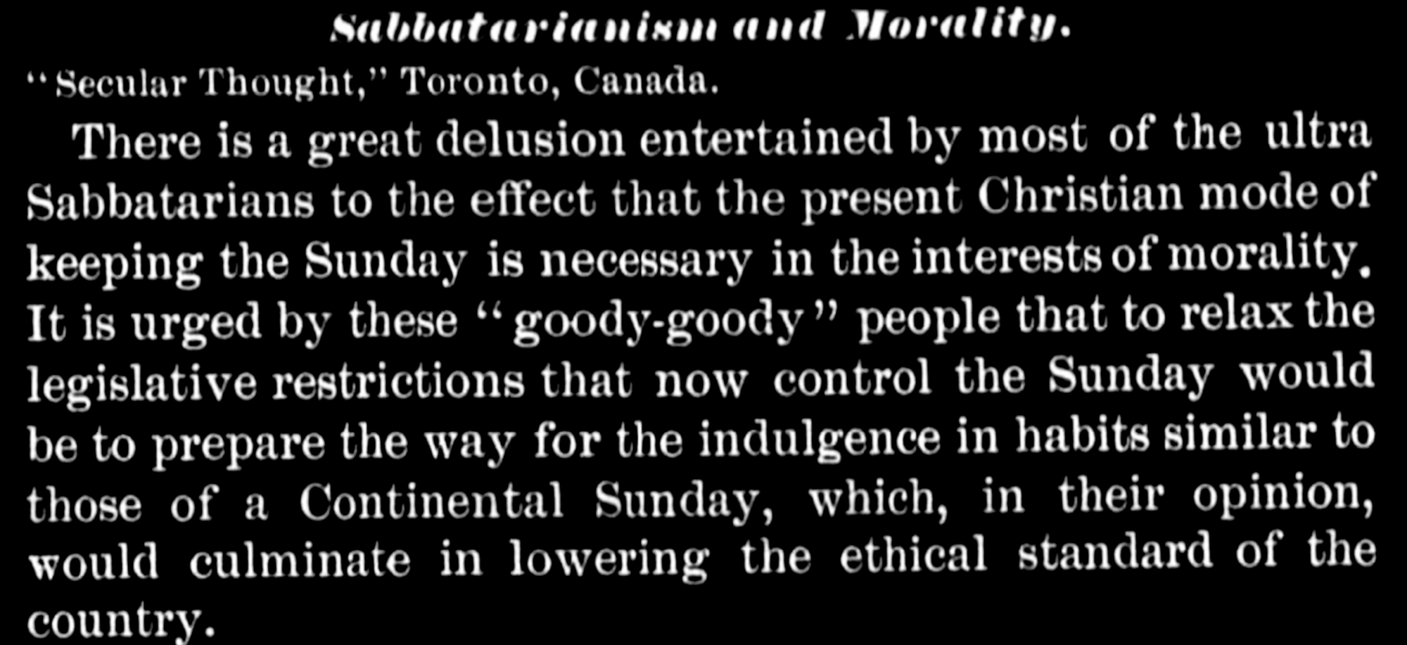 Sabbatarianism and Morality – Secular Thought, 7/20/1889 Republished from Lucifer’s sister publication Fair Play There is a great delusion entertained by most of the ultra-Sabbatarians […]
