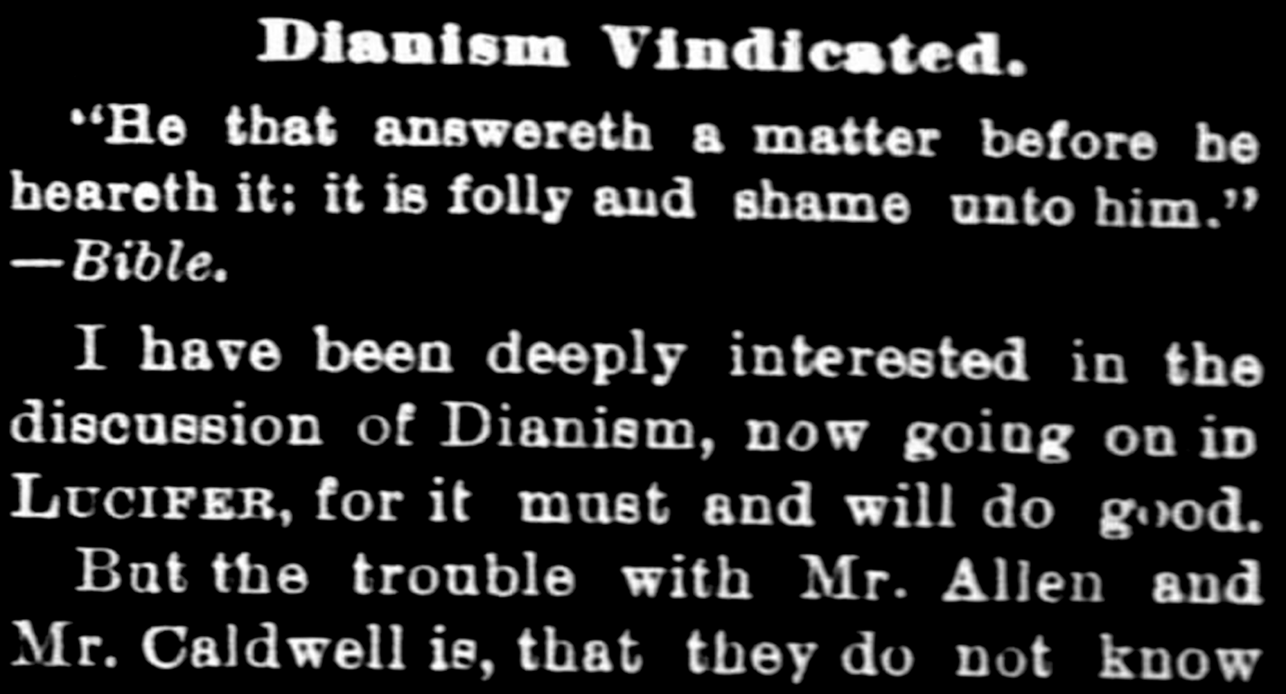 A Dispute on Dianism (1880’s) Republished from our predecessor publication Lucifer the Light Bearer Asceticism – W, 8/13/1886 “My kingdom is not of this world.” […]