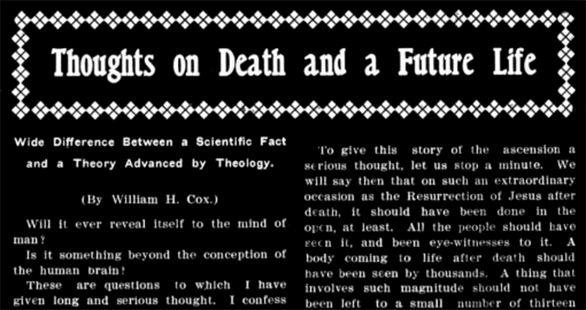 Thoughts on Death & a Future Life – William H. Cox, 4/12/1908 Republished from the free-thought publication the Blue Grass Blade Will it ever reveal […]
