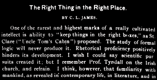 The Right Thing in the Right Place – C.L. James 5/11/1900 Republished from our predecessor publication Lucifer the Light Bearer, I was considering not publishing […]